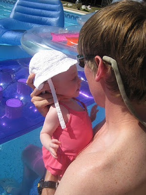 We decided to let AJH try to the pool for the first time, but it didn’t go over very well. At least she had a cute suit!